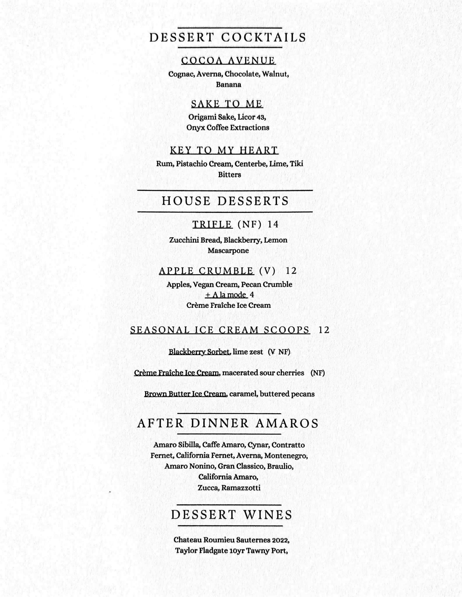 Our Dessert Menu changes frequently!