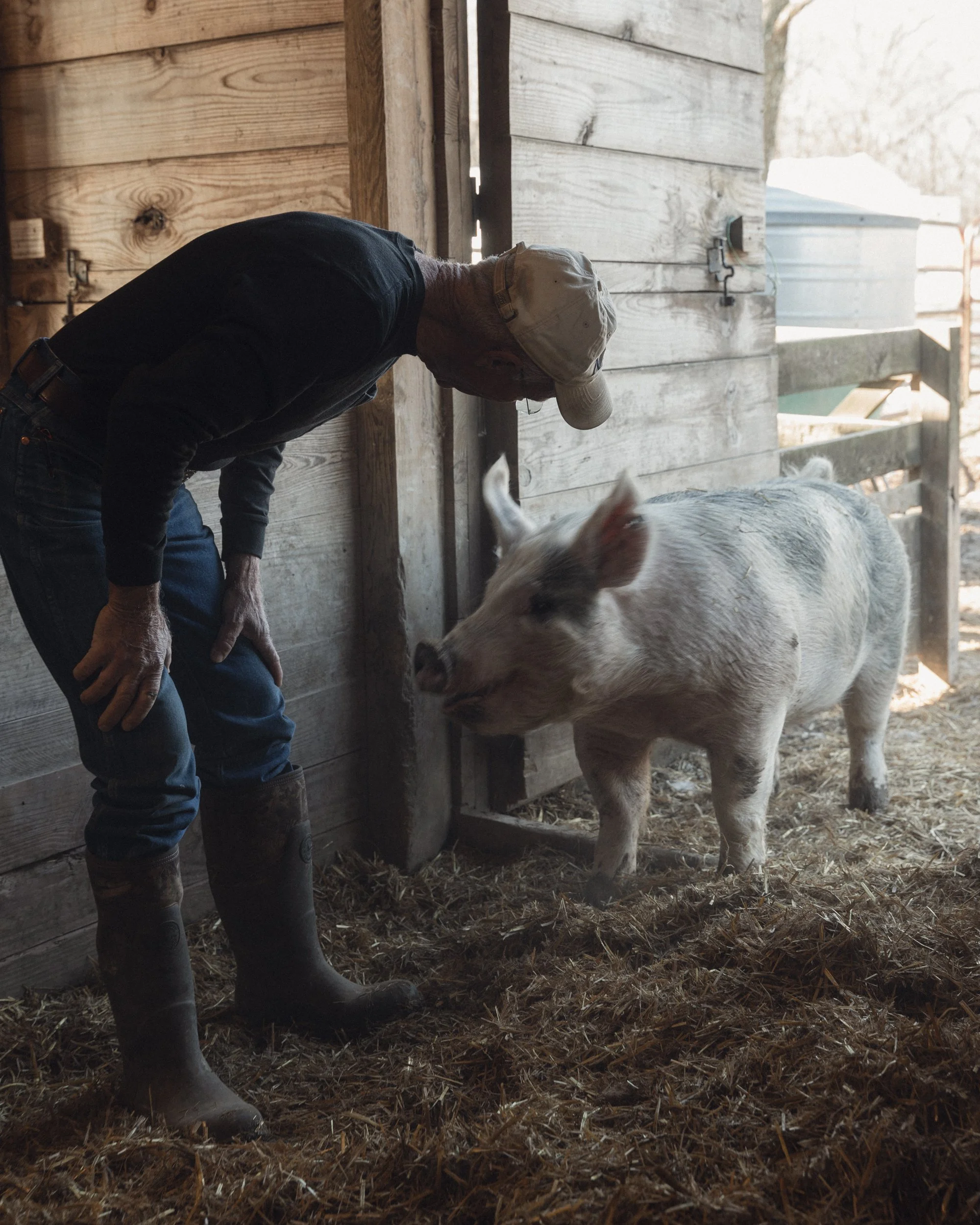 Will and Waltina’s work is an ongoing conversation between agriculture, nature, and community, and sustainability is truly embedded in years of doing what is best for their animals. The Hannas have a lengthier history of raising heritage hogs. These pigs are given the freedom to root and roam and have a visible connection to Will, who cares for them (and talks to them) daily.