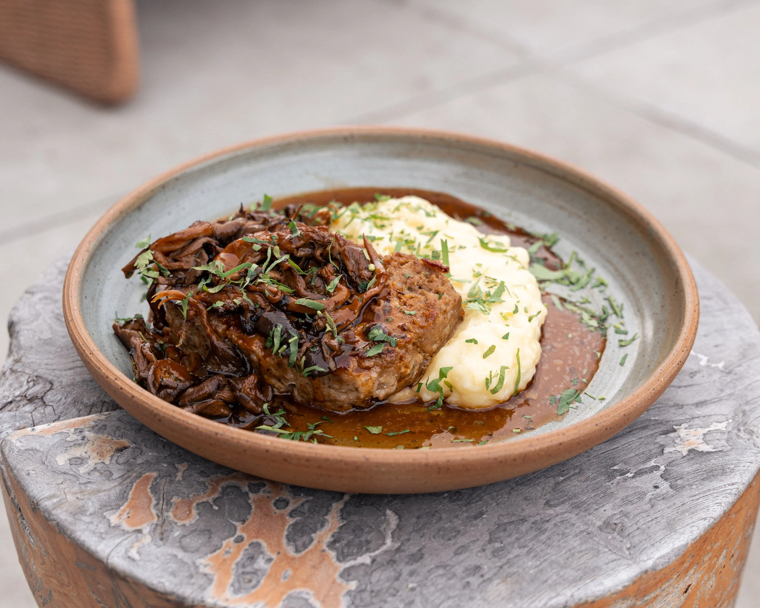 Hanna Lamb Meatloaf, leek and potato mash, mushroom jus